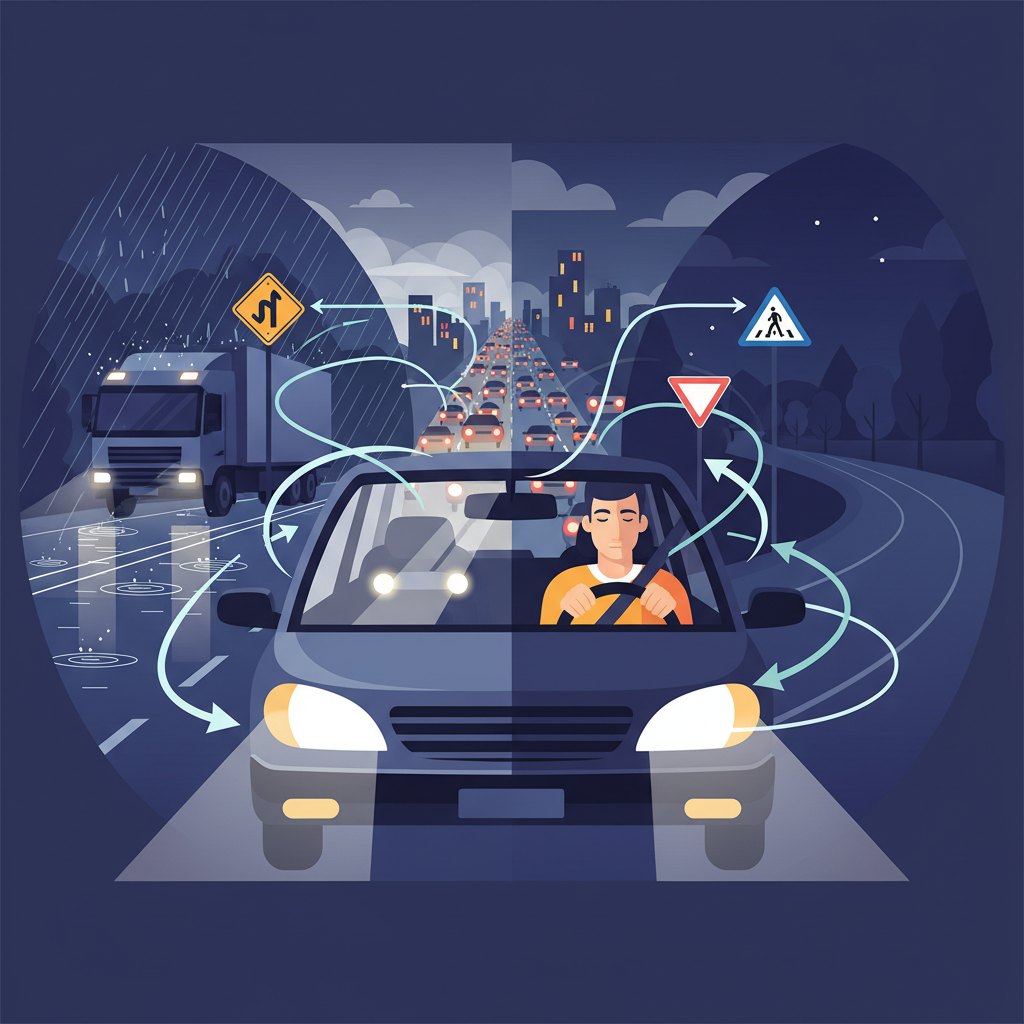 - Condições adversas (chuva, neblina, noite) e como agir.