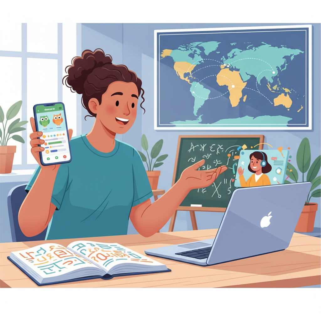 Os cursos online autodirigidos são a melhor pedida. Complemente com prática de conversação gratuita em aplicativos de troca de idiomas ou comunidades online. É a opção mais democrática e adaptável a rotinas agitadas.